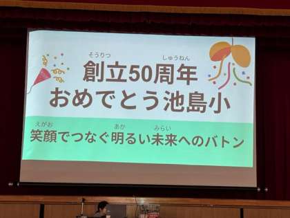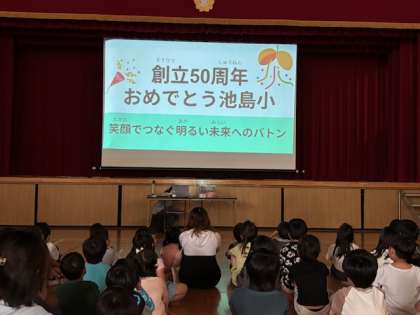 今日6月3日は、池島小学校の創立50年目の記念日です。代表委員会がお誕生日会を企画してお祝いの会を開きました。