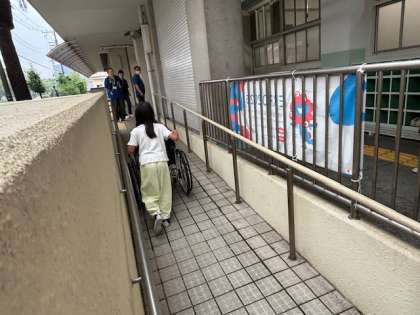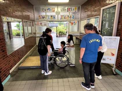 段差を上げる、スロープを下りる、エレベーターに乗るなどの体験は、力加減や方向感覚がとてもたいせつです。