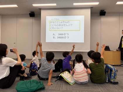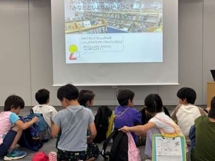 3年生がみなと図書館に見学に来ました。初めに図書館の説明を聞いて、クイズをしていただきました。