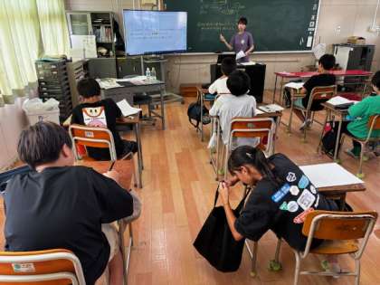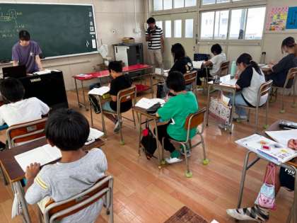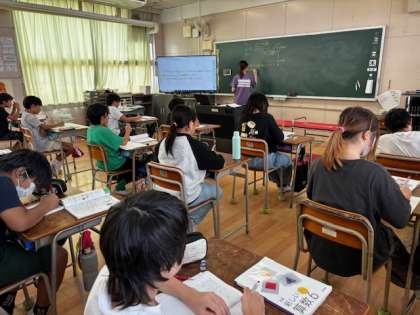 6年生が「比と比の値」の学習をしていました。卒業アルバムの学習風景の写真を撮るので緊張気味です。