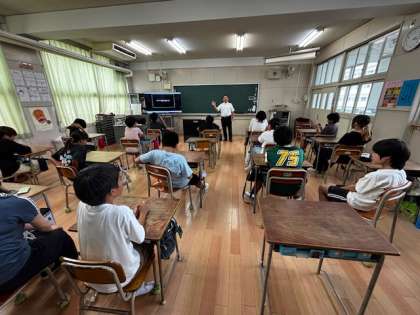 6年生が防犯教室の学習をしました。警察の方が来られて、SNSやスマホメッセージでのトラブルについて教えていただきました。