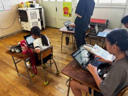 4年生の漢字学習です。デジタルドリルを使って1学期に学習した漢字の復習をしていました。コンピュータは筆順にも厳しいみたいです。