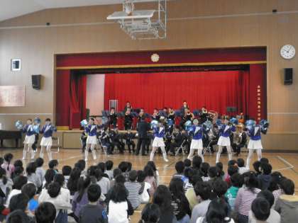 最後には、音楽隊の皆さんによる池島小学校の演奏に合わせて、全員で校歌を歌いました。