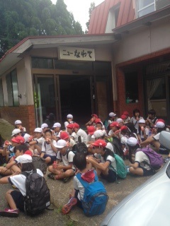 7月21日木曜日15時30分、宿舎に着いた5年生はジュースをいただき一休みしています。