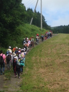 7月22日金曜日8時、5年生は全員元気に高丸山登山を開始しました。