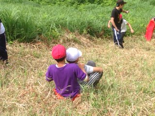 7月23日土曜日10時、餅つき体験の次は草ソリ遊びです。