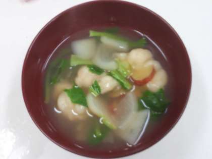 すいとんの中身は、「さつまいも」と学校の畑で採れた「天王寺蕪」そして、小麦粉で作っただんごです。味つけは、しょうゆと塩のみです。