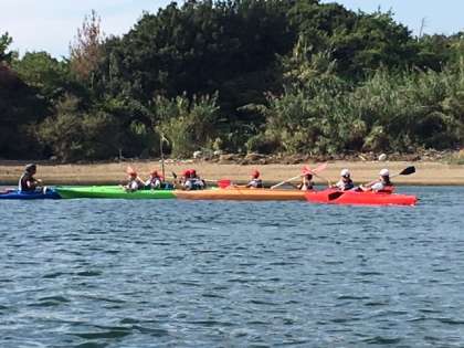 10月20日14時30分、6年生は、二人一組になってシーカヤックを楽しみました。
