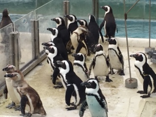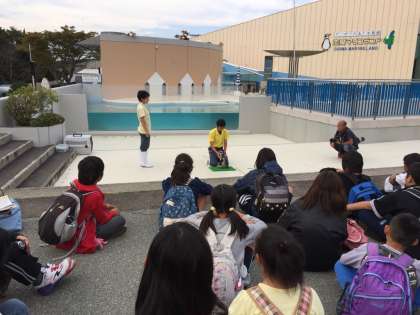 10月20日木曜日15時30分、6年生は志摩マリンランドに到着。ペンギンを触らせていただいています。