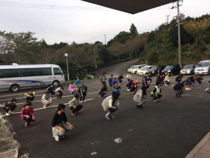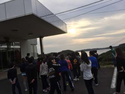 10月21日金曜日7時、6年生は2日目の朝を迎え、宿舎の前で朝会をしました。