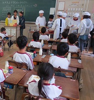10月14日(金)に、三先幼稚園から、来年度小学校1年生になる園児のみなさんが給食体験のため来校しました。