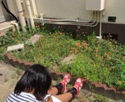 ゴールデンウィークが終わり、職員室の運動場側に「ひなげし」の花が咲きました。 早速4年生が理科の学習で観察していました。