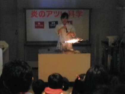 サイエンスショーでは、「炎のアツい科学」というテーマで「火」についての