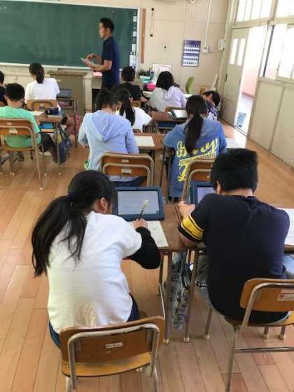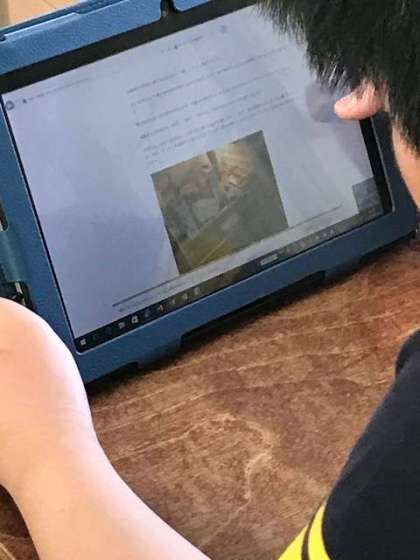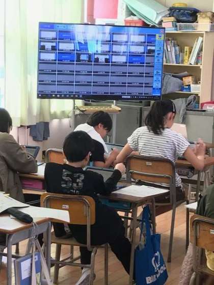 6年生が、家庭科で、タブレットを使って学習していました。インターネットに接続して、色々な掃除の方法を調べていました。先生のモニターには、今だれが何を調べているのかが一目で分かるようになっています。子ども達は、真剣に取り組んでいました。