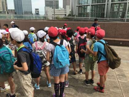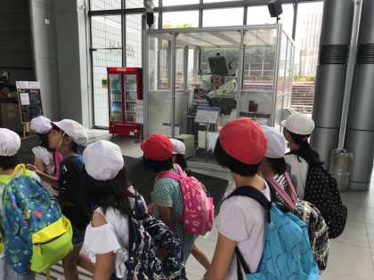 今日の4年生は、大阪市立科学館に社会見学です。到着後、3人ずつグループに分かれて、館内の注意を確認して、自由行動です。子ども達は、目を輝かせて出発しました。