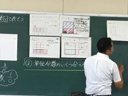 11日月曜に6年生算数の研究授業を行いました。分数÷分数という、6年生の内容では難しい学習でしたが、子ども達は、グループごとに議論を重ねて、結論を出していました。さすがに最高学年らしい授業で、講師の大学の先生も褒めておられました。