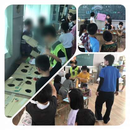縦割り班ごとに、お店を回ります。説明をしっかり聞いて、ルールを守って遊びます。各お店は、とても工夫されていて楽しい遊びばかりです。