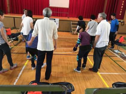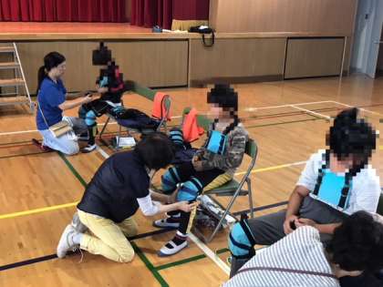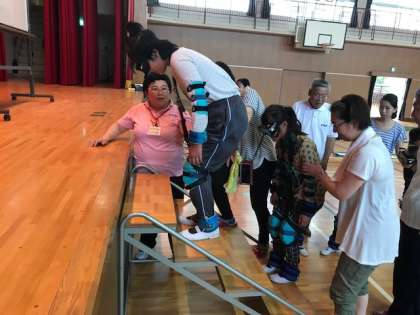 別のグループは、身体が重くなって動きにくいという体験をしました。膝や腰に負担がかかると、階段も上りにくくなります。