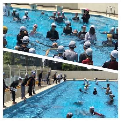着衣のまま浮く体験もしましたが、なかなかうまく浮けなくて空気を服に入れると少し浮きやすいことも体験しました。ペットボトルを使った救助の仕方や、ペットボトルでは、かなり浮きやすくなるという体験にもずいぶん驚いていました。