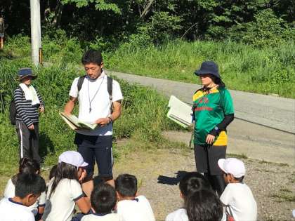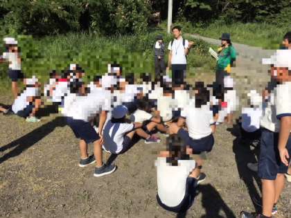 宿舎のニューなわてに到着し、部屋割り後避難訓練をしました。ここまで歩いて来てからいただいたジュースはとても美味しかったようです。
