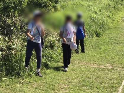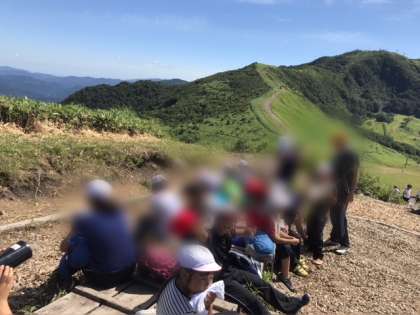 高丸山の頂上に到着しました。全員登頂完了です。よく頑張りましたね。今のところ熱中症にならず元気です。