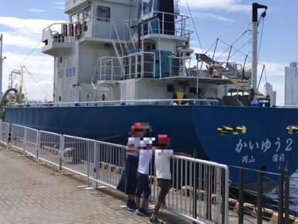 海遊館の見学の後、港を見に行きました。大きな船がたくさん停泊していました。社会科で学習した大阪湾を実際に見ることができました。