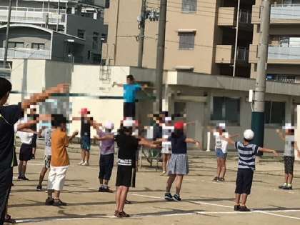 今朝はラジオ体操集会でした。運動会に向けて、ラジオ体操の行い方を確認しました。力を入れて止めるのは難しいですが、頑張っている子がたくさんいました。