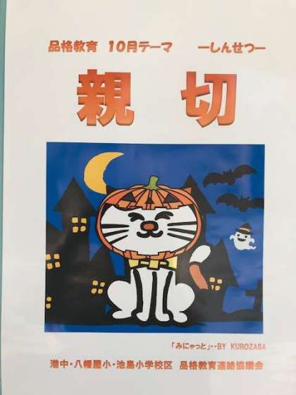 10月の品格教育のテーマは、「親切」です。親切は、「深切」 で,〈相手の心とか情に深く迫る〉 というニュアンスから 「人情が厚い」 という意味のことばでした。その 「深」 が同音の 「親」 に変化したものだそうです。親切な行動をたくさんできる人になって欲しいです。
