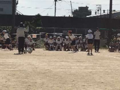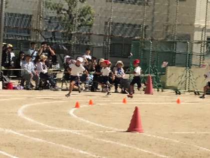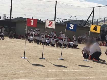 運動会は、各学年のかけっこから始めました。池島小学校では、全コースセパレートで走ります。どの子も全力で走りました。