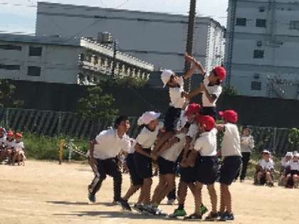 5年生の迫力あるリレーの次には、5、6年生による騎馬戦です。