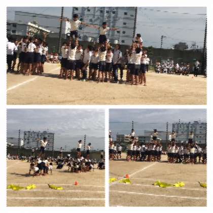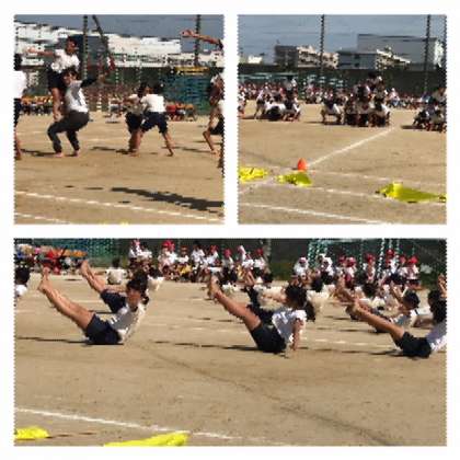最後は、5、6年生の組体操「翔」です。練習では、なかなか決まらなかった技もビシッと決まり、さすがのまとまりを見せてくれました。