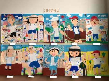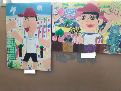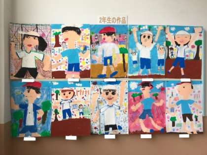 運動会の思い出の絵です。すばらしい迫力ですね。運動会の時の歓声が聞こえてきそうなしっかりとした表現ができています。人物の大きな、見る人に伝わる絵です。