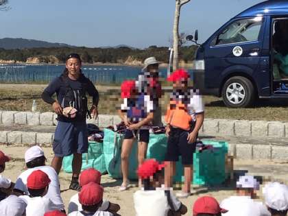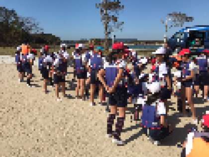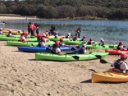 シーカヤックの準備です。ライフジャケットをきて、漕ぎ方を習いました。