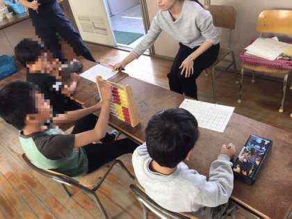 特別支援学級の算数の授業を見せてもらいました。一人一人のニーズに合わせて、教材や教具を工夫して学習していめした。かなり難しい計算にも挑戦していました。
