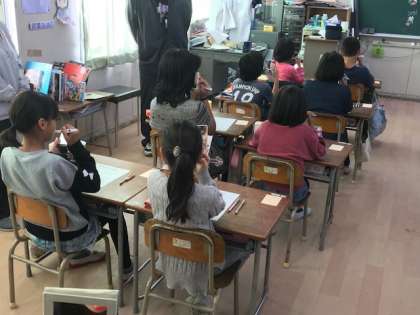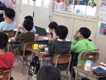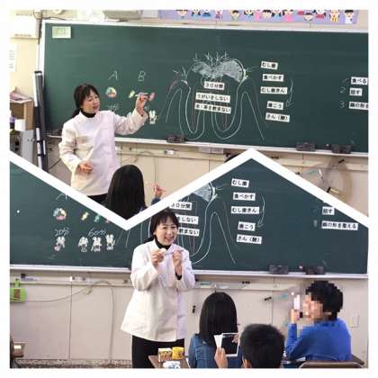 4年生の歯磨き指導では、かなり詳しい歯磨きの方法を教えていただきました。歯ブラシのいろいろな持ち方や歯の場所に応じた磨き方を実践しました。