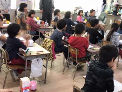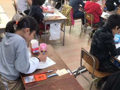 磨き方を学んだ後は、ワークシートにフッ素の効果や歯の働き(食べる。話す。顔の形を整える。)についてまとめました。フッ素入り歯磨きも効果が高いことも学びました。池島小学校の子は、うがいがとても上手にできると褒めていただきました。