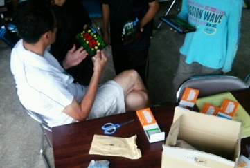 7月25日金曜日、午後3時30分。宿舎で焼き板に絵付けをしました。どんな作品ができたか楽しみです。