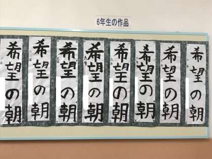 6年生の習字の作品です。とても美しく整った文字をかけています。さすがに6年生です。気持ちのこもった文字ですね。