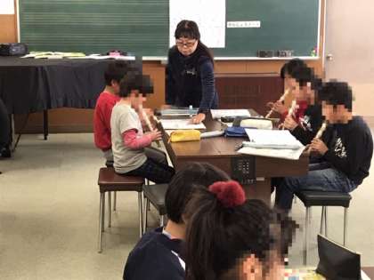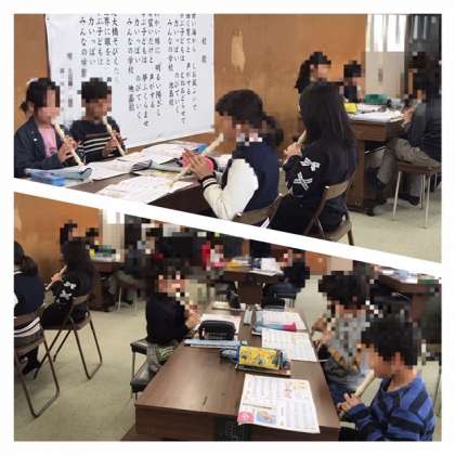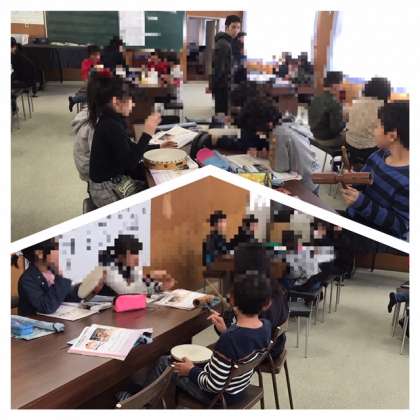 3年生が音楽の授業で、リコーダーや打楽器の演奏に取り組んでいました「小さな世界」「よろこびの歌」をリコーダーで演奏していました。打楽器のリズム作りは、「こきりこ」の曲に合わせて作っていました。