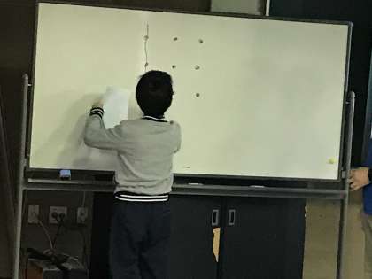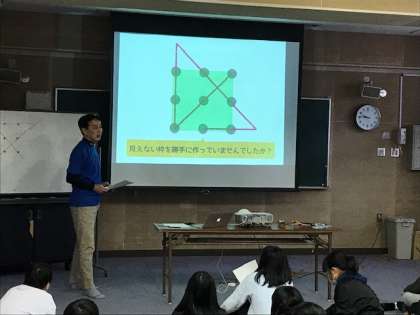 土曜授業で、はぐくみネットのみなさんに出前授業をしていただきました。「体感型ゲームを通じたコミュニケーションの学習」です。初めは心をほぐすワークからスタートです。固定観念にとらわれないことを教えていただきました。