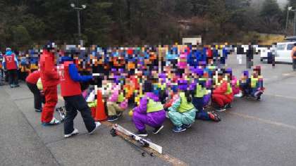 予定より早く六甲スノーパークに到着しました。ウェアに着替えて、インストラクターさんからスキー板の履きかたを教えてもらってます。