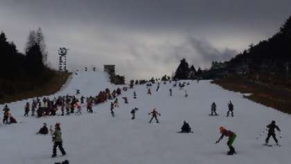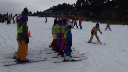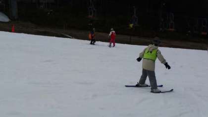午後のレッスン開始です。滑れるようになってきたグループのメンバーは、リフトに乗って、一番上から滑り始めました。