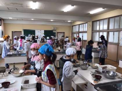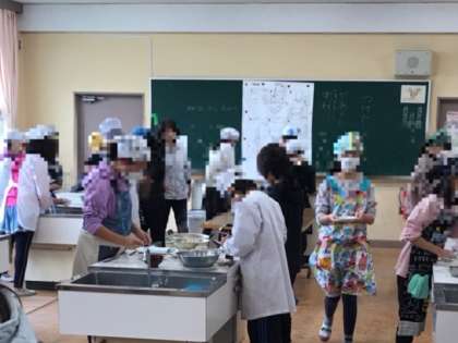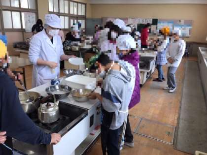 5年生が家庭科の調理実習で白玉団子を作りました。班ごとに別れて、自分の役割を果たしながら作りました。みんなでワイワイ作った白玉団子は美味しいです。
