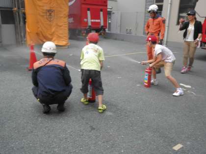 水消火器で、消火訓練を体験させてもらいました。いざという時に役立ちます。
