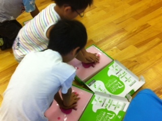 心臓マッサージの体験もしました。うまく押せると、「キュッ、キュッ」と音が鳴ります。