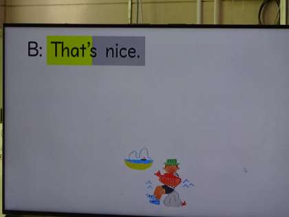 6年生の外国語活動の時間です。夏休みの思い出を英語で答えます。
