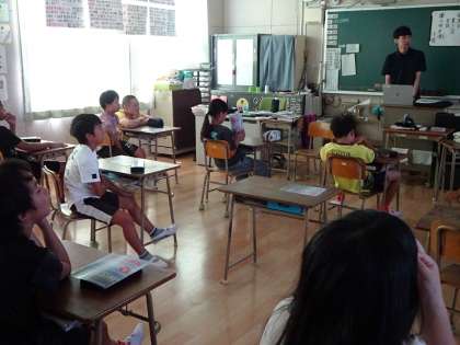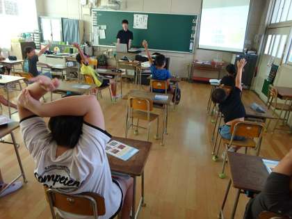 5年生が「大阪港出前授業」を受けました。コンテナ船の話やコンテナの話を聞き、コンテナをおろしている動画を視聴もしました。万博が行われている夢洲にはたくさんの港があるそうです。ちなみに、赤と白のキリンのような機械は、コンテナを積んだり下ろしたりするもので「ガントリークレーン」というそうです。