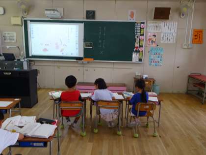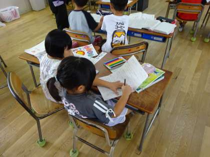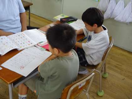 1年生が国語の時間に拗音をつかった言葉を作って楽しんでいました。