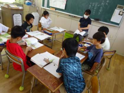 2年生の文学的教材「ニャーゴ」を読み取ってすごろくつくりをしていました。物語の内容に合うように作っていくためには何回も読み直すことが大切です。