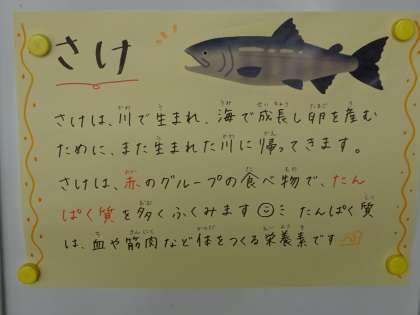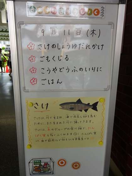 今日は鮭のしょうゆだれかけです。